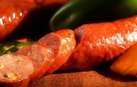 This sausage starts with our original hardwood smoked flavor, and then we add whole sliced jalapeños and shredded sharp cheddar cheese. Great for an appetizer when grilling or sausage dogs.